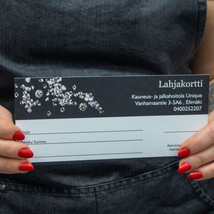 Uniquen lahjakortit netistä. Lahjakortti käy maksuna kaikkiin kauneuspalveluihin (tekijänä Ulla), tuoteostoihin sekä koulutettu hieroja Nikon hierontoihin. Voimassa 3kk.